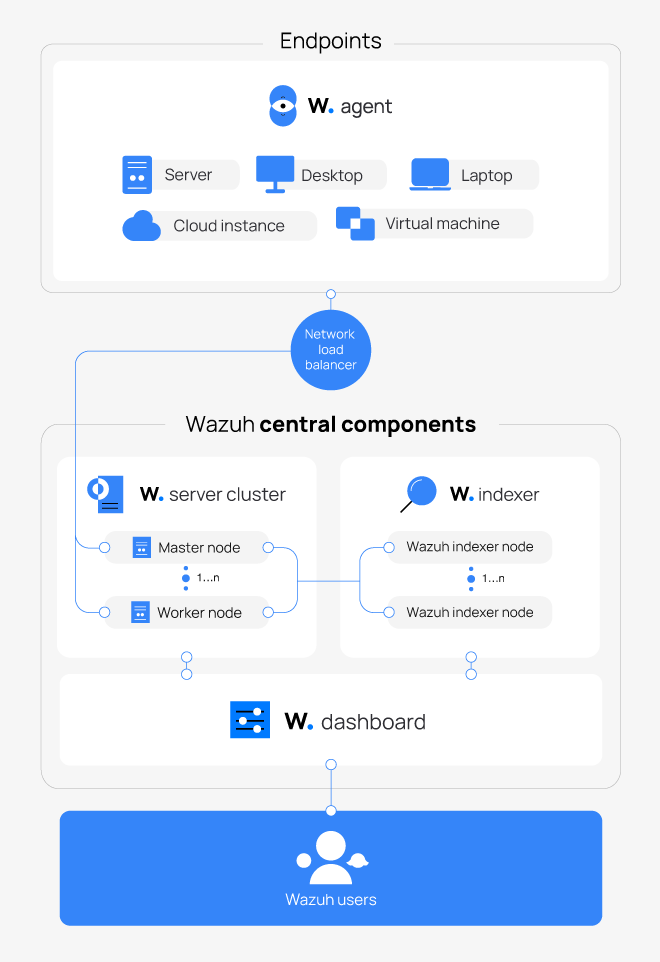A Wazuh deployment consists of the following components:
