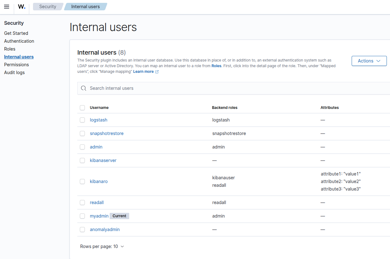 - Go to Indexer management > Security > Internal users.