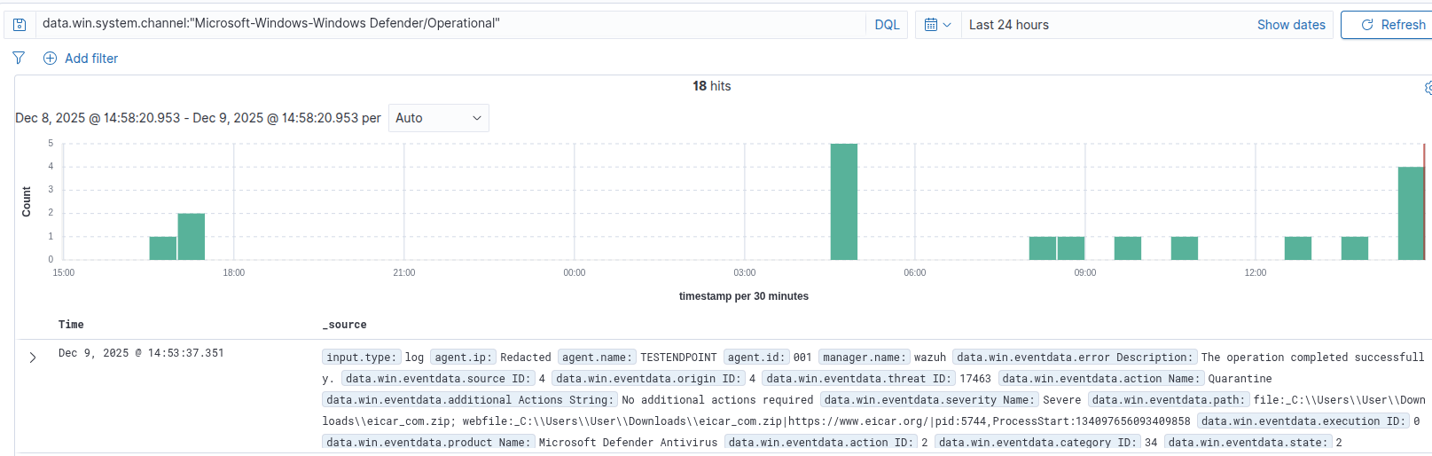 This leverages the Wazuh Defender rules and gives you real time visibility into antivirus detections.