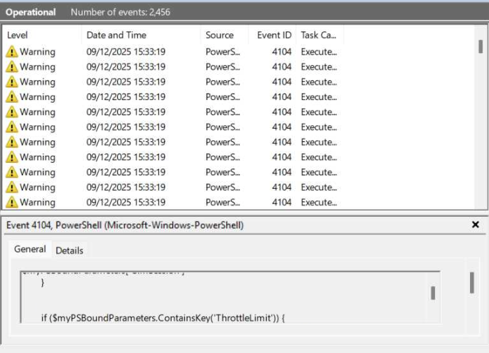 <!-- 2. PowerShell Operational log (4103, 4104 etc) -->