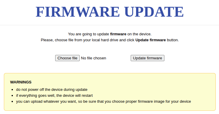 Click Choose File, select the kernel image, then run the firmware update.